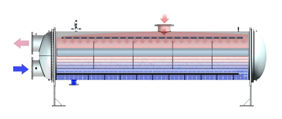 運用行業領先的高效冷凝傳熱管,優化冷凝器結構布置,換熱性能更優。在底部設有多重擾流的逆流過冷室,提高過冷度。