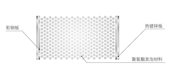 分體式復合型材結構專利,外板采用優質彩鋼板,內板采用防腐蝕的熱鍍鋅板,中間夾層充注45kg/m³的聚氨酯發泡材料。箱板導熱系數≤0.0224w/m.℃,具有 閉式氣孔的絕熱材料,氣孔內空氣被分隔開而不會影響絕熱效果。